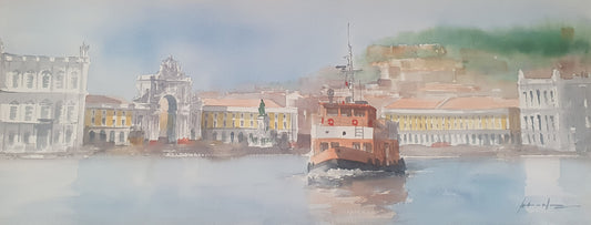 Lisboa e o Rio Tejo e Cacilheiro, Águarela original de António Neves