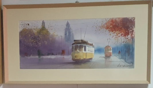 Eléctricos de Lisboa e a Basílica da Estrela, Águarela original de António Neves