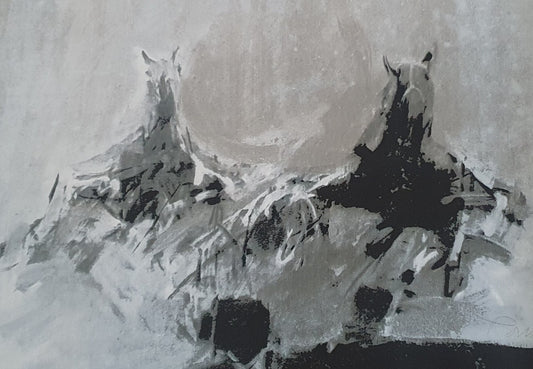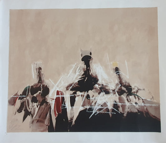 "Vincennes" dois cavalos a negro, serigrafia de Júlio Pomar sobre tela