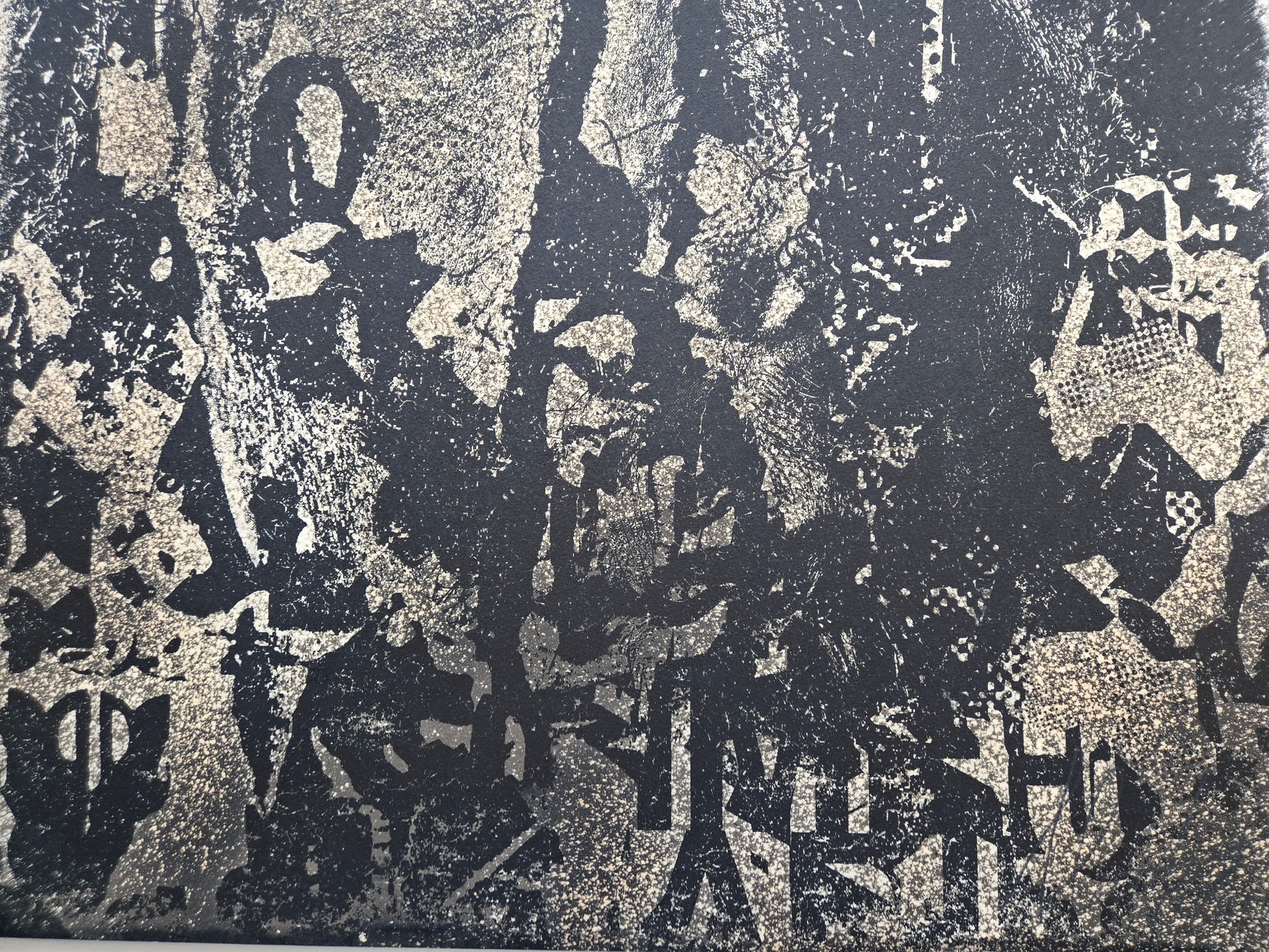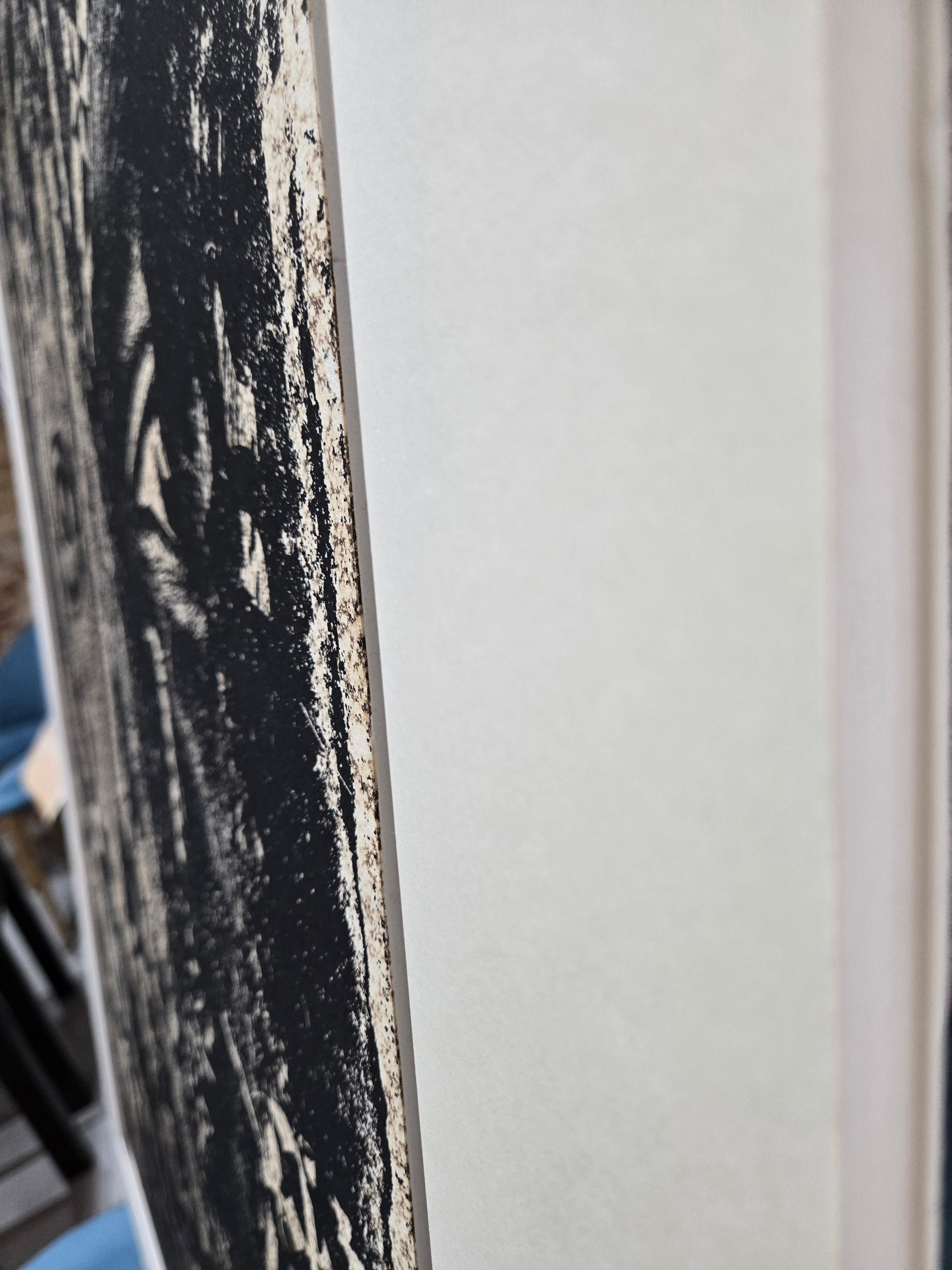 Colada sobre material pvc e com passpartout com pequenos toques no passpartout (pode ser retirado)
